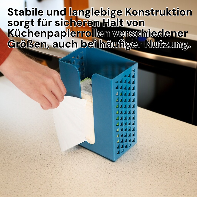 ● Selbstklebendes Design ermöglicht eine einfache und bohrfreie Montage an jeder glatten Oberfläche – ideal für Küche, Bad oder Schrank. ● Platzsparende Aufbewahrung von Küchenpapierrollen, sodass Sie mehr Arbeitsfläche in Ihrer Küche haben und alles ordentlich bleibt. ● Hochwertiges, langlebiges Material sorgt für eine stabile Halterung und hält auch bei häufigem Gebrauch sicher an Ort und Stelle. ● Vielseitig einsetzbar: Geeignet für Küchenpapier, Frischhaltefolie oder Müllbeutelrollen, um Ihren Alltag komfortabler zu gestalten. ● Rückstandslose Entfernung ohne Beschädigung der Wände – perfekt für Mieter oder häufiges Umgestalten Ihrer Räume.