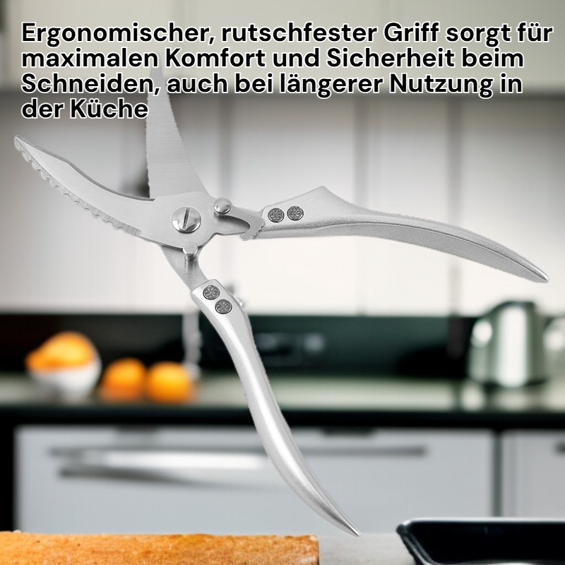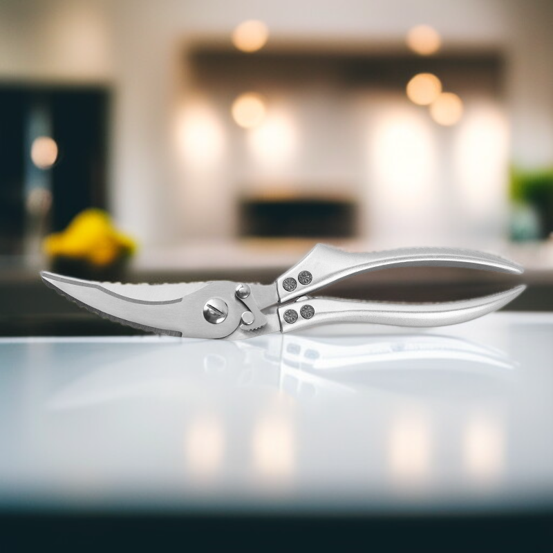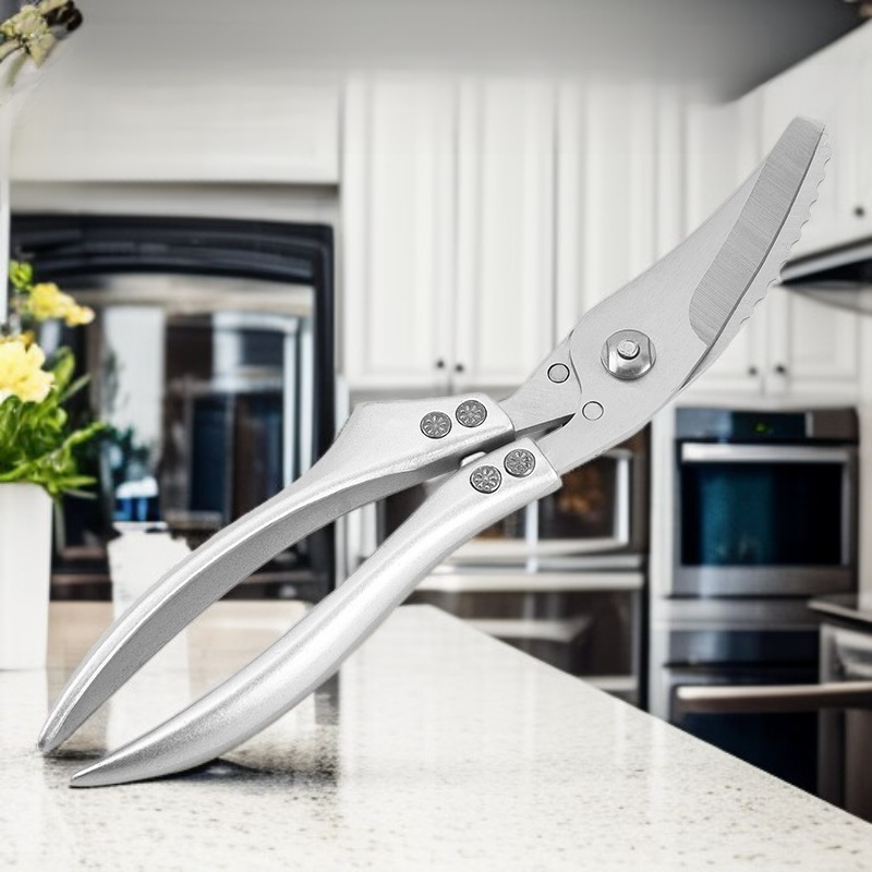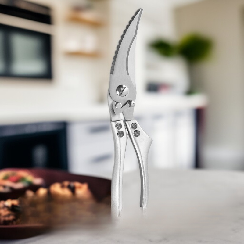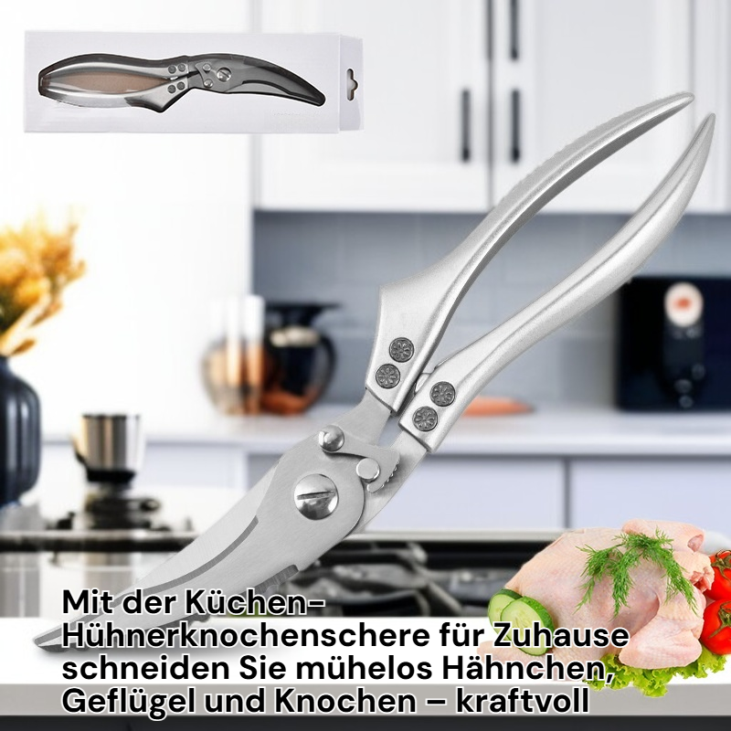 ● Mit der hochwertigen Hühnerknochenschere können Sie mühelos Geflügel und Knochen schneiden, was die Zubereitung Ihrer Lieblingsgerichte zu Hause erheblich erleichtert. ● Ergonomisch geformte Griffe sorgen für einen sicheren und komfortablen Halt, sodass auch längere Arbeiten in der Küche angenehm und kraftsparend bleiben. ● Die rostfreie Edelstahlklinge garantiert eine lange Lebensdauer und bleibt auch nach häufigem Gebrauch zuverlässig scharf und hygienisch. ● Dank des praktischen Sicherheitsverschlusses lässt sich die Schere nach Gebrauch sicher verstauen und schützt vor Verletzungen. ● Vielseitig einsetzbar für Huhn, Ente, Fisch und andere Lebensmittel – ein unverzichtbares Werkzeug für jede moderne Küche.